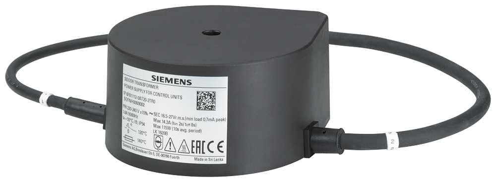 SIDOOR TRANSFORMER трансформатор. Входное напряжение 220-240 VAC(+/-10%) 50/60 Hz, выходное напряжение 16,5-18Vr.m.s. полноволновой выпрямитель, IP54, включая кабель питания с вилкой (CEE 7/7) длиной 2м, включая кабель для подключения к контроллеру длиной 1,5м
