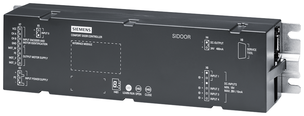 SIDOOR ATE530S контрольный модуль для дверей транспортных станций с защитным покрытием. Макс. вес двери 280кг. 1*RS485, 5*DI, 2*DO, -25°C .. +50°C. PROFINET класса C с двумя коннекторами RJ45