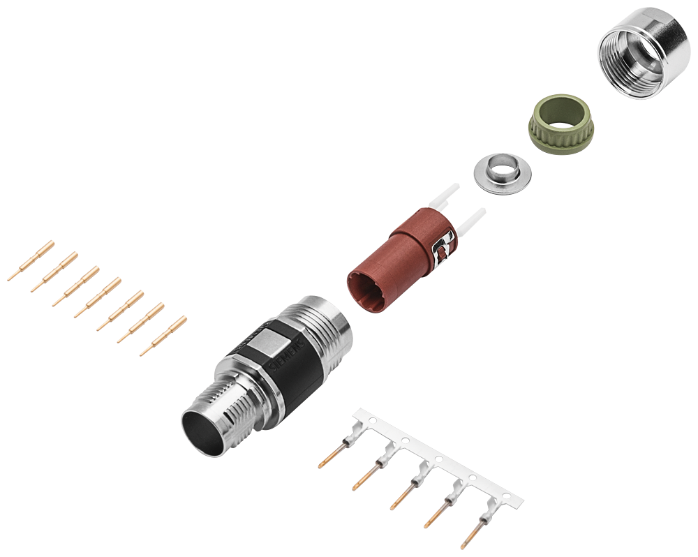 power and signal connector M12 for S210 a. 1FK2, 10-pole, Speed-Connect, extension, male thread, pin