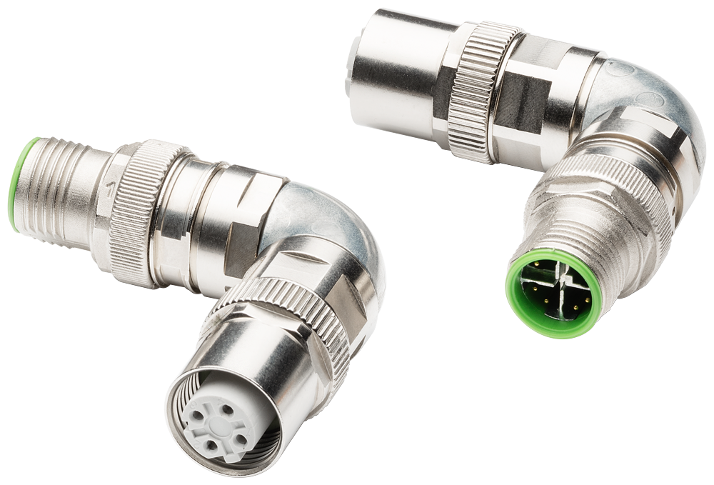 IE adapter M12-X90/M12-D90; M12 X-encoded pin to M12 D- encoded socket; Cat5; for easy connection of M12 interfaces with D and X coding; 1 pack = 1 unit