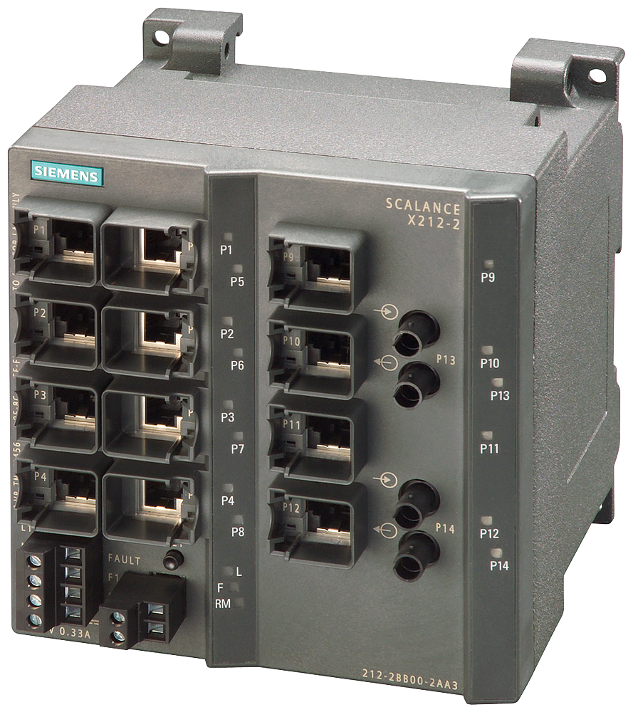 SIMATIC NET, SCALANCE X212-2, УПРАВЛЯЕМЫЙ IE КОММУТАТОР, 12 X 10/100МБИТ/С RJ45 ПОРТОВ, 2 X 100МБИТ/С МУЛЬТИМОДОВЫХ BFOC, СВЕТОДИОДНАЯ ДИАГНОСТИКА, СИГНАЛЬНЫЙ КОНТАКТ ОШИБКИ С КНОПКОЙ НАСТРОЙКИ, РЕЗЕРВИРОВАННОЕ ПИТАНИЕ, PROFINET-IO УСТРОЙСТВО, УПРАВЛЕНИЕ