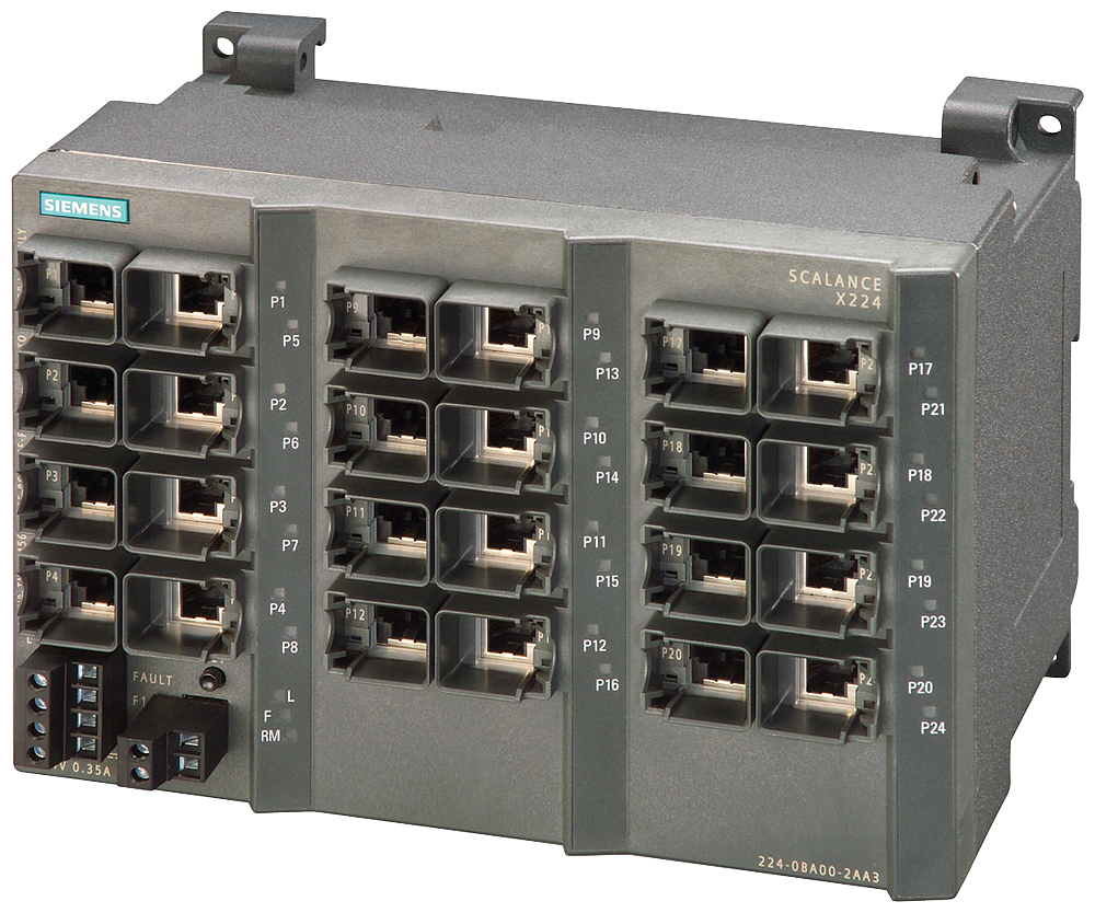 SIMATIC NET, SCALANCE X224, УПРАВЛЯЕМЫЙ IE КОММУТАТОР, 24 X 10/100МБИТ/С RJ45 ПОРТА, СВЕТОДИОДНАЯ ДИАГНОСТИКА, СИГНАЛЬНЫЙ КОНТАКТ ОШИБКИ С КНОПКОЙ НАСТРОЙКИ, РЕЗЕРВИРОВАННОЕ ПИТАНИЕ, PROFINET-IO УСТРОЙСТВО, УПРАВЛЕНИЕ СЕТЬЮ, ВСТРОЕННЫЙ МЕНЕДЖЕР РЕЗЕРВИРОВ