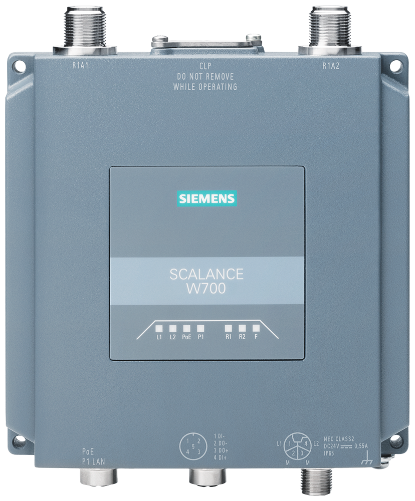 IWLAN access point, SCALANCE WAM766-1 EEC, 1 radio, 2.4/5 GHz, 2 N-Connect connections, iFeatures support via CLP, IEEE 802.11ax (Wi-Fi 6), 1201 Mbps (gross) per radio, 1x10/100/1000 Mbps M12 socket, redundant 24 V DC, M12 L-encoded , PoE, for extended environmental conditions, IP65/IP67, -30...+75 °C, CLP slot, DI/DQ, A-encoded, observe national approvals! CERT ID: MSAX65-W1-M12-E2 operation in Egypt and Israel. scope of delivery: sealing caps for connections