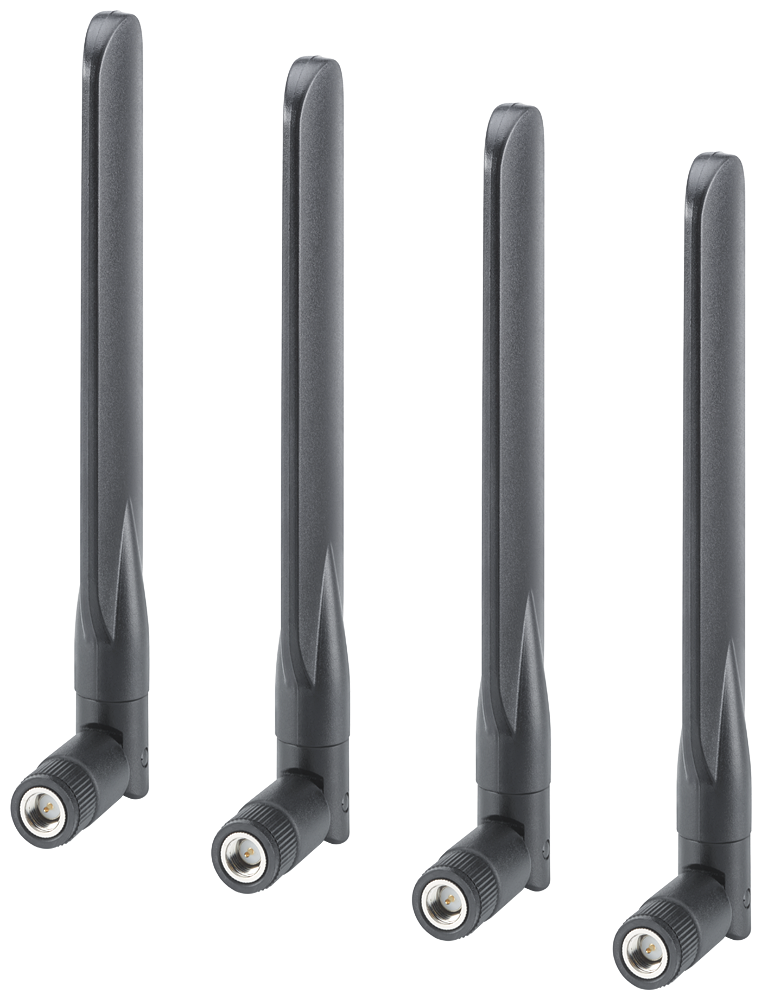 ANT897-4MA antenna for 5G/4G/3G/2G networks in frequency range of 600..5000 MHz; omnidirectional characteristic ; antenna gain: 1..2 dBi; including SMA male connection; radially rotatable with additional joint; IP30; -20..+65 °C; exact specification and national approvals to be observed; for direct installation with SMA connection system; scope of supply: 4x ANT 897-4MA,