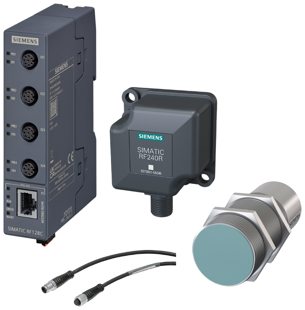SIMATIC RF128C starter package 1x SIMATIC RF128C 1x SIMATIC RF220R 1x SIMATIC RF240R 1x cable reader CM, M12, 180° 1x cable reader CM, M12, 90° release by logistics department required