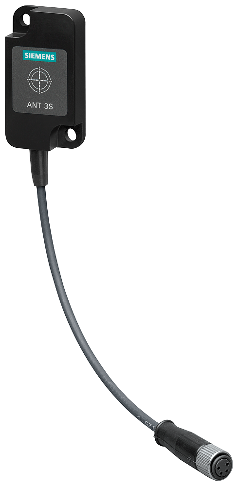 RF300/RF200 antenna ANT 3S for connection to RF250R and RF350R IP65, -25 °C to +70 °C, dimensions 50x 28x 10 mm incl. antenna connection cable PUR, UL 758, Length 3 m trailing connector M8 straight/M8 angled for the transponders MDS D117, MDS D127, MDS D421, MDS D521, Consisting of: 1x 6GT23981CD500AX0 1x 6GT23910AH30