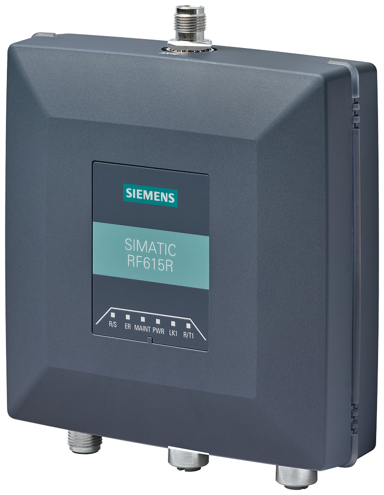SIMATIC RF600 Reader RF615R CMIIT; Interfaces: 1 Ethernet / PROFINET M12; 1 integrated antenna + 1 ext. antenna port; 1 dig. input, 1 dig. output; 24 V DC; IP67;-25 to +55 °C without accessories.