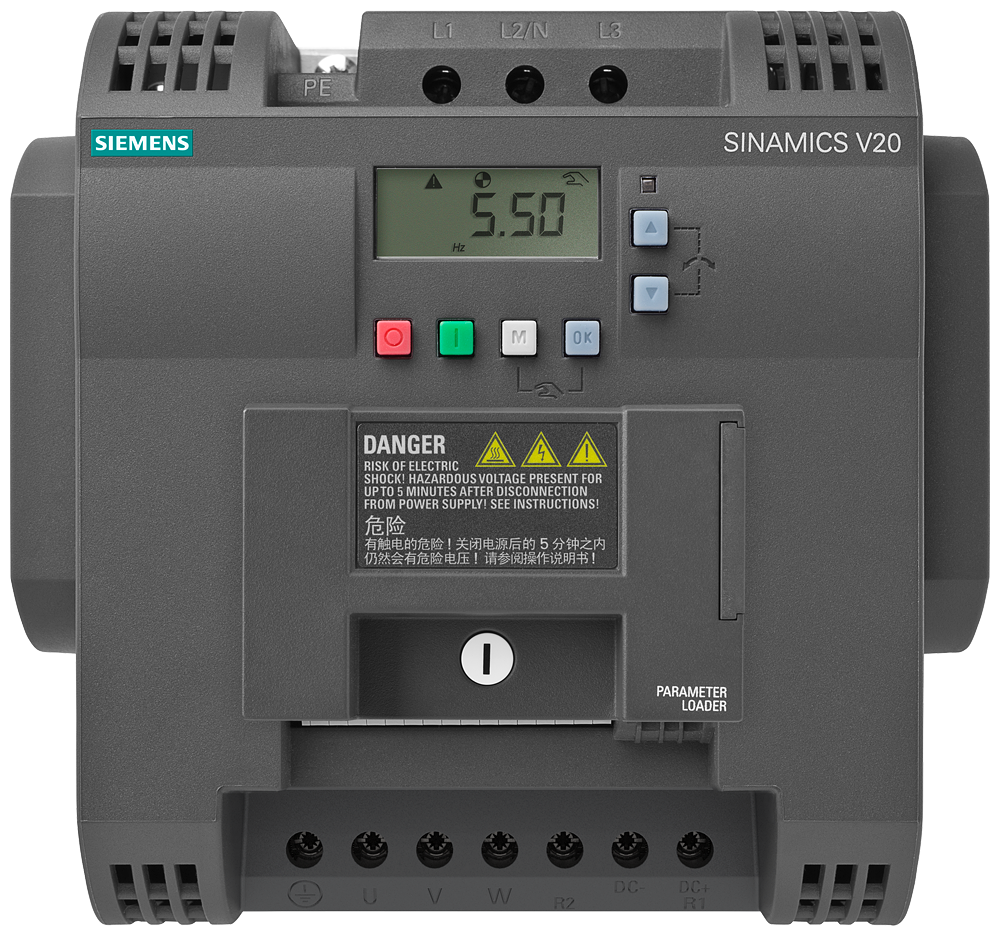 SINAMICS V20 1AC200-240В -10/+10% 47-63Гц НОМИНАЛЬНАЯ МОЩНОСТЬ 0,25кВт ПЕРЕГРУЗКА 150 %НОМИНАЛЬНОГО ТОКА НА 60 С, СО ВСТРОЕННЫМ ФИЛЬТРОМ С2 ВХ/ВЫХ-: 4DI, 2DO,2AI, 1AO ИНТЕРФЕЙС: USS/MODBUS RTU ВСТРОЕННАЯ ПАНЕЛЬ BOP ЗАЩИТА: IP20/ UL OPEN TYPE ТИПОРАЗМЕР:FSA 90X150X146 (ВXШXГ)