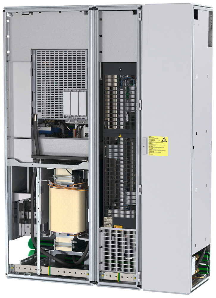 SINAMICS S120 Cabinet Module Active Line Connection Module incl. active interface module compact, without MCB W=1200 mm 500-690 V 3AC, 50/60 Hz, 1270 A, output: 675-1035 V DC rated power: 1400 kW cabinet unit IP21 liquid cooling WGA version, CIM with FPGA