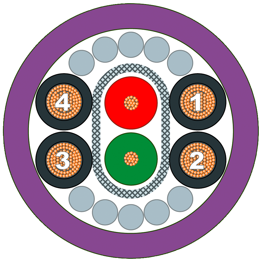 SIMATIC NET, PROFIBUS ECOFAST ГИБРИДНЫЙ КАБЕЛЬ GP, 2XCU 0.64 MM, 4XCU 1.5 КВ.ММ, КАБЕЛЬ СОБРАН С 2 ECOFAST ШТЕКЕРАМИ, ТРЕЙЛИНГОВЫЙ ТИП, 5 M