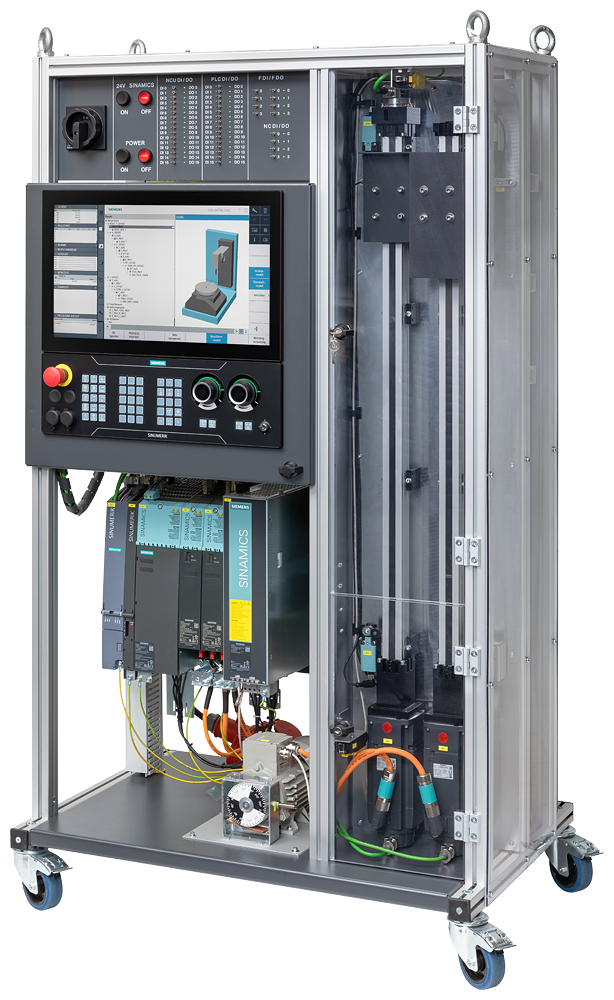 training rack for SINUMERIK ONE the training rack SINUMERIK ONE is suitable for practice-related training of commissioning, operation and programming, as well as maintenance tasks. components: NCU 1750 with SD card export version of current software for the software, a test rack license must be requested separately by the user of the rack NX10.3, ALM 16 kW, AIM 16 kW, IPC427E ITC2200 neutral version, MCP2200C; Motor Module PROFIsafe I/O