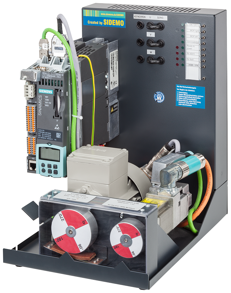 THE READY-TO-START TRAINING UNIT FOR TRAINING AND PRESENTATION PURPOSES CONSISTS OF THE CONTROL UNIT CU310-2DP POWER MODULE PM340/230V, INDUCTION MOTOR 1LA7060 WITH ENCODER, MOTOR LOAD DEVICE AND FLYWHEEL, SERVO MOTOR 1FK7022 WITH ENCODER AND FLYWHEEL, AND OPERATOR PANEL