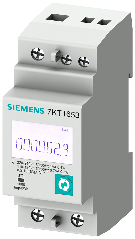 SENTRON, измерительный инструмент, 7KT PAC1600, LCD, L-N: 230 V, 63 A, DIN-рейка, 1-фаз., Modbus RTU/ASCII, прямая / активная / реактивная