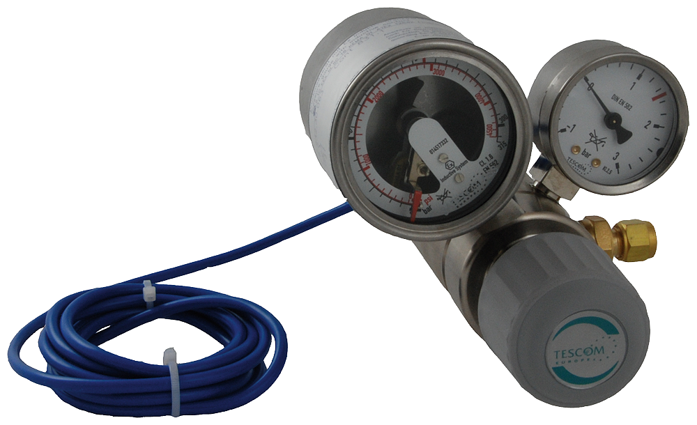 Cylinder Pressure Regulator single stage 0-4 bar outlet pressure Stainless steel/FKM Primary and secondary pressure gauge Cylinder connection: DIN 477 No. 14 calibration gas Outlet conn.: 6 mm fitting