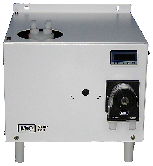 Compressor Gas cooler with 1 heat exchanger of PVDF 1 peristaltic pump for condensate removal Ambient temp.: +10 to 50 DEG C Gas outlet dew point: +5 DEG C Power supply: 115 V AC, 60Hz wall mounting enclosure Protection class: IP 20 Dimensions (WxHxD): 270x270x316 mm