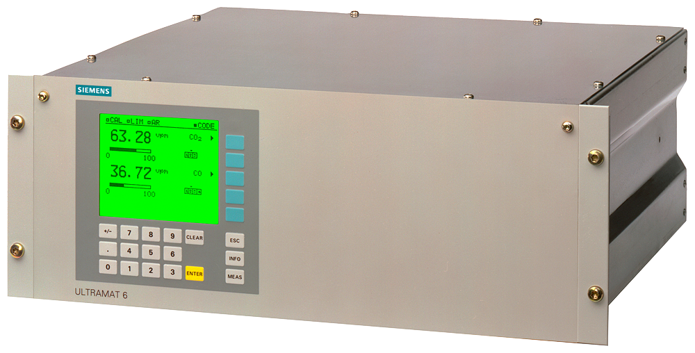 ULTRAMAT 6 Встроенный газоанализатор 19 дюймов, одноканальный стоечный блок 19 дюймов для установки в шкафы Труба с внешним диаметром 6 мм CO2 Наименьший диапазон измерения: от 0 до 5 об/мин, наибольший диапазон измерения: от 0 до 100 об/мин, Внутренний газовый тракт: шланг из FKM (витон), камера для проб (облицовка): алюминий, камера сравнения (проточного типа): непроточного типа Без 200–240 В переменного тока, 48–63 Гц