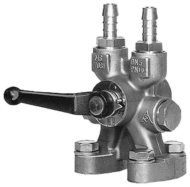 Многоходовой клапан переключения, пониженного давления - макс. давление 25 бар, макс. температура 60 С, контрольные отверстия - быстросъёмные соединения