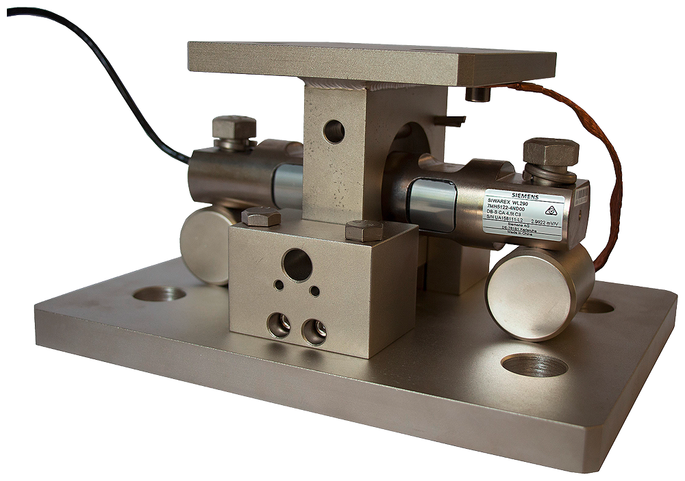 Silo mounting unit for load cell SIWAREX WL290 DB-S CA 2.3 … 9.1t Installation ready and pre-assembled mounting unit with locked top plate. Grounding cable included Material: steel, nickel-plated Load cell not included