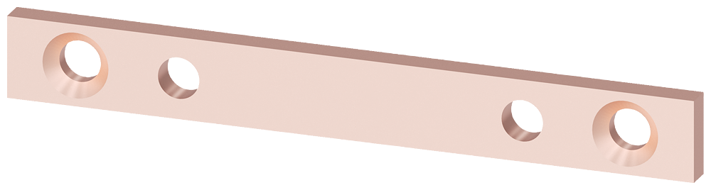 ALPHA CU distribution busbars, 630A insert nuts, 3-pole for NH00 in-line switch disconnector W=250 mm 30 mm x 10 mm (3 bars)