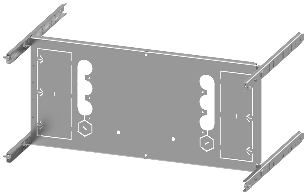 SIVACON S4 EBS SENTRON 3VA 3VA23 (400 A) 4-pole Mounting position horizontal Plug-in base, Insert Number of switches 1 Height 250 mm device holder Width 600 mm Branch heights 250, 350mm