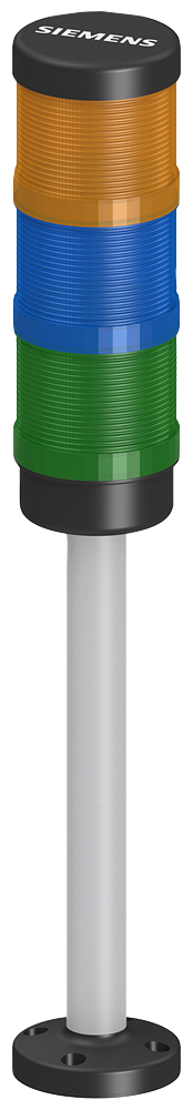 Комплексное устройство, сигнальная колонка, вверху: постоянный свет, цвет: желтый, в середине: постоянный свет, цвет: синий, внизу: постоянный свет, цвет: зеленый, встроенный светодиод 24 В AC/DC, присоединительный элемент для монтажа на трубе, Труба, 250 мм, лапа, Пластмасса