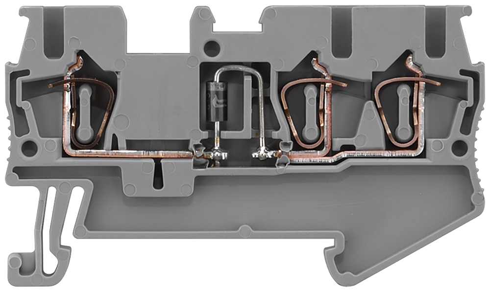 КЛЕММА ДИОДНАЯ, ПРУЖИННОЕ ПОДСОЕДИНЕНИЕ, 3 ПОДСОЕДИНЕНИЯ ПРОХОД СЛЕВА НАПРАВО СЕЧЕНИЕ: 0.08 - 2.5 MM2, ШИРИНА: 5.2 MM, СЕРАЯ