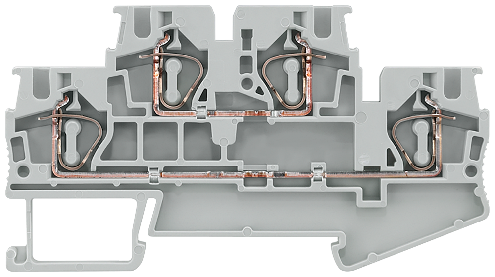 КЛЕММА ДВУХРЯДНАЯ НЕИЗОЛИРОВАННАЯ, ПРУЖИННОЕ ПОДСОЕДИНЕНИЕ: 0.5 - 4 MM2, ШИРИНА: 6.2 MM, СЕРАЯ