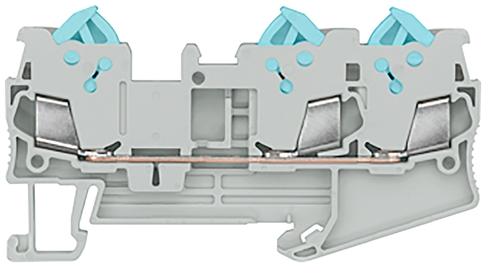 Through-type terminals with quick-connect technology 3 connection points, Cross-section: 0.25-1.5 mm2, Width: 5.2mm, Color: blue