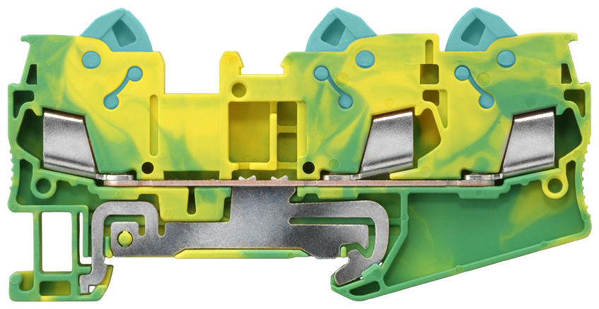 Protective conductor terminal with quick-connect technology 3 connection points, Cross-section: 0.5-2.5 mm2, Width: 6.2mm, Color: green-yellow