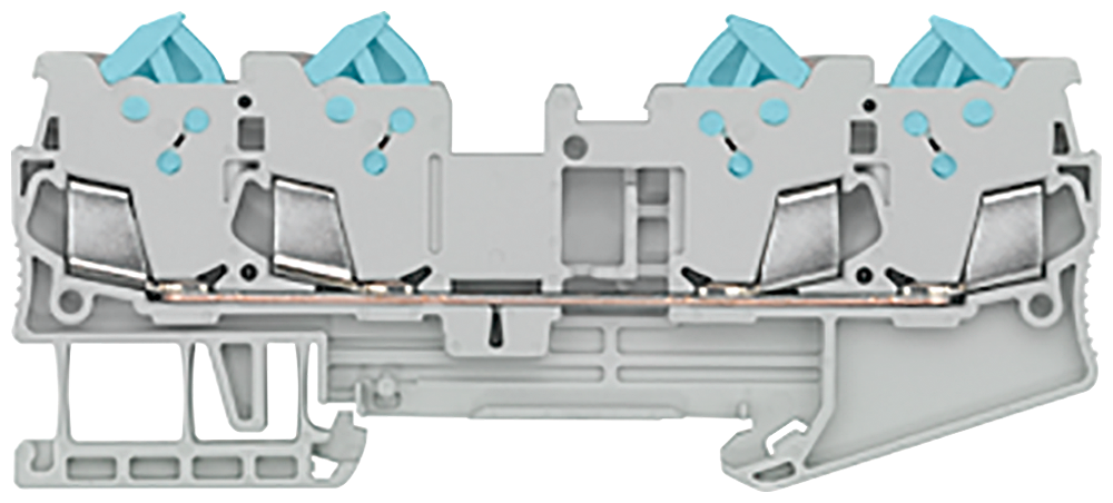 Through-type terminals with quick-connect technology 4 connection points, Cross-section: 0.25-1.5 mm2, Width: 5.2mm, Color: gray