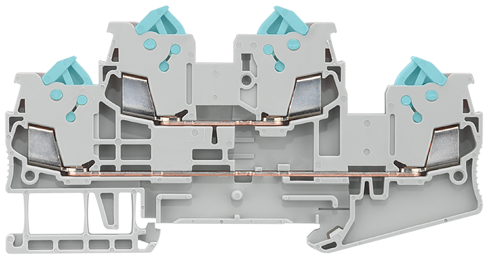 Two-tier terminals with quick-connect technology Cross-section: 0.25-1.5 mm2, Width: 5.2mm, Color: gray