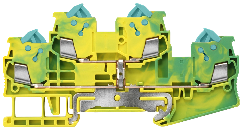 Two-tier PE terminal with quick-connect technology Cross-section: 0.25-1.5 mm2, Width: 5.2mm, Color: green-yellow