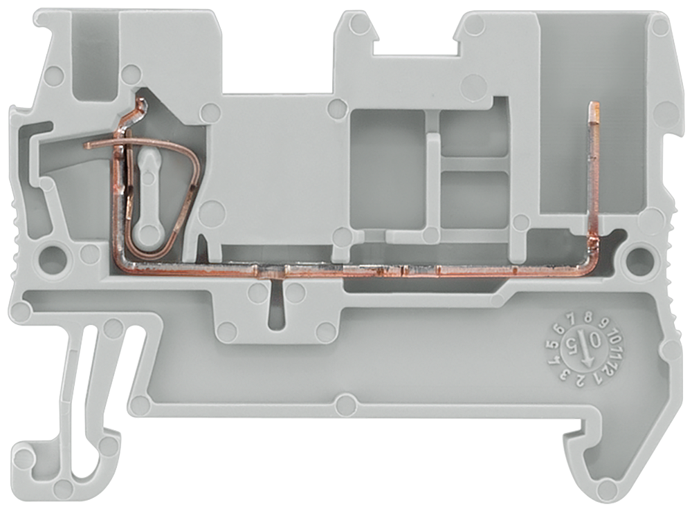 Hybrid through-type terminal, plug-in and spring-loaded connection, Cross-section 0.08-2.5 mm2, width 5.2 mm, Color: blue