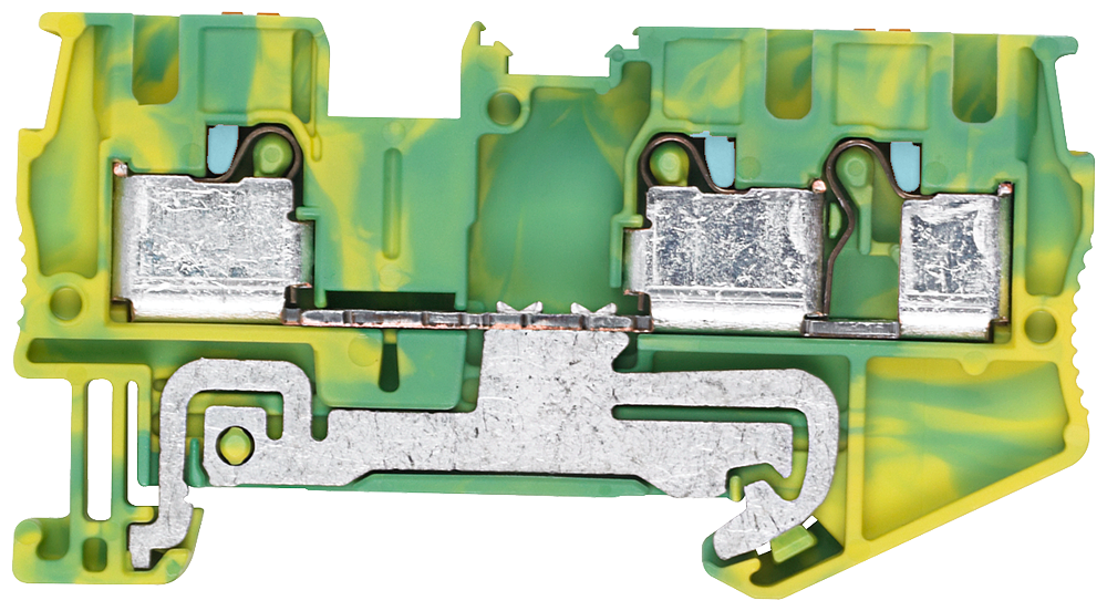 Through-type PE terminal 4 mm2, 6.2 mm wide green-yellow 3 clamping points