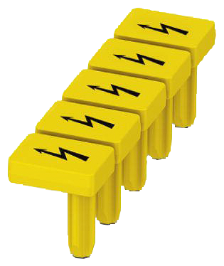 Label, with warning arrow, vertical, terminal width: 5.2 mm, yellow