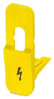 Label, with warning arrow, vertical, terminal width: 16.2 mm, yellow