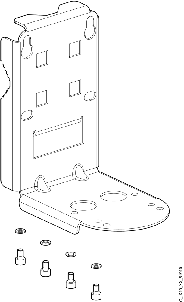 Mounting bracket for FS-DSL housing for mounting on a wall, 2" stand or measuring pipe. 4 x M5x8 A4 screw 1 x Wall bracket 4 x Lock washer B5 A4