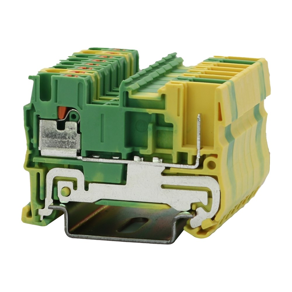 Заземляющая клемма с разъемным подключением, количество точек подсоединения: 2, тип подключения: разъемное подключение / Push-in, сечение: 0,2 мм² - 4 мм², тип монтажа: РМ-35/7,5, РМ-35/15, цвет: желто-зеленый