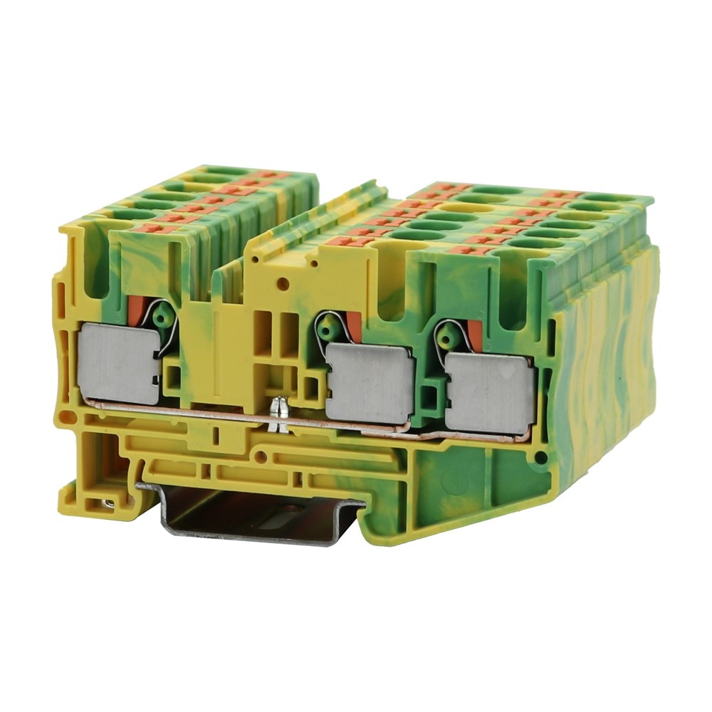 Заземляющая клемма, количество точек подсоединения: 3, тип подключения: зажимы Push-in, 1 уровень, сечение: 0,5 мм² - 10 мм², тип монтажа: РМ-35/7,5, РМ-35/15, цвет: желто-зеленый