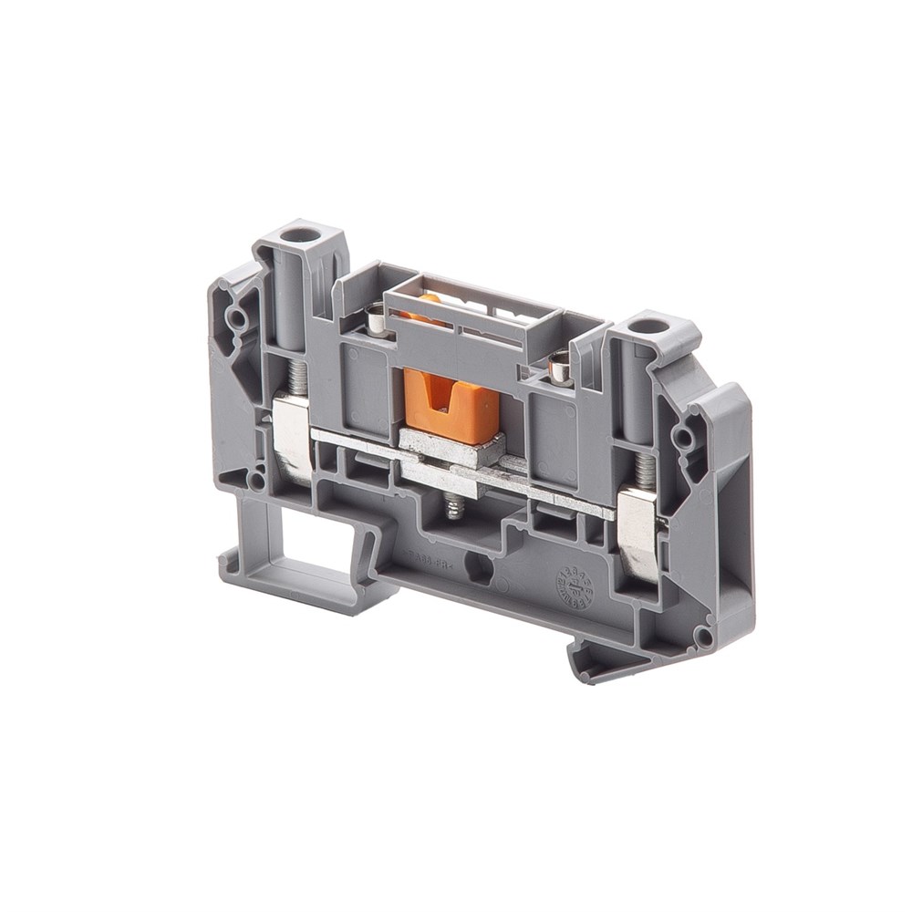 Клемма с ползунковым размыкателем, с измерительными втулками, номинальное напряжение: 800 В, номинальный ток: 41 A, тип подключения: винтовые зажимы, 1 уровень, номинальное сечение: 6 мм², сечение: 0,5 мм² - 10 мм², тип монтажа: РМ-35/7,5, РМ-35/15, цвет: серый