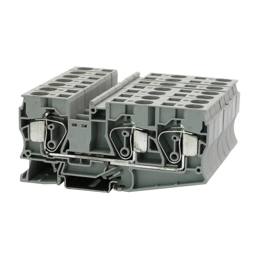 Проходные клеммы, количество точек подсоединения: 3, номинальное напряжение: 800 В, номинальный ток: 90 A, тип подключения: пружинный зажим, расчетное сечение: 16 мм², сечение: 0,5 мм² - 25 мм², тип монтажа: РМ-35/15, РМ-35/7,5, цвет: серый
