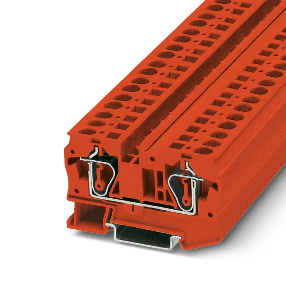 Проходные клеммы, номинальное напряжение: 1000 В, номинальный ток: 41 A, тип подключения: пружинный зажим, 1 уровень, расчетное сечение: 6 мм², сечение: 0,2 мм² - 10 мм², тип монтажа: РМ-35/7,5, РМ-35/15, цвет: красный