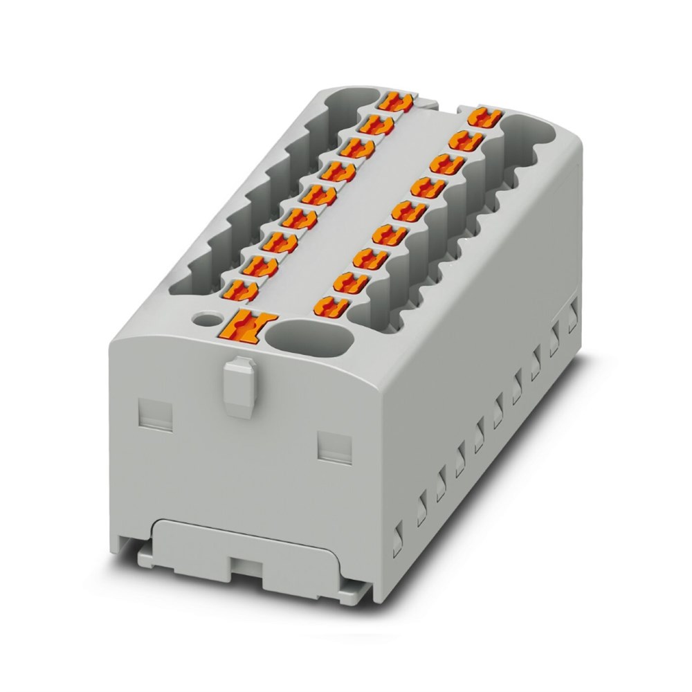 Распределительный блок, базовая клемма с питанием, номинальный ток: 41 A, тип подключения: зажимы Push-in, групповое подключение, расчетное сечение: 4 мм², сечение: 0,2 мм² - 6 мм², отвод, сечение: 0,2 мм² - 2,5 мм², тип монтажа: крепление защелками на адаптере для монтажной рейки, прямой монтаж при помощи фланца, подвесной, цвет: серый