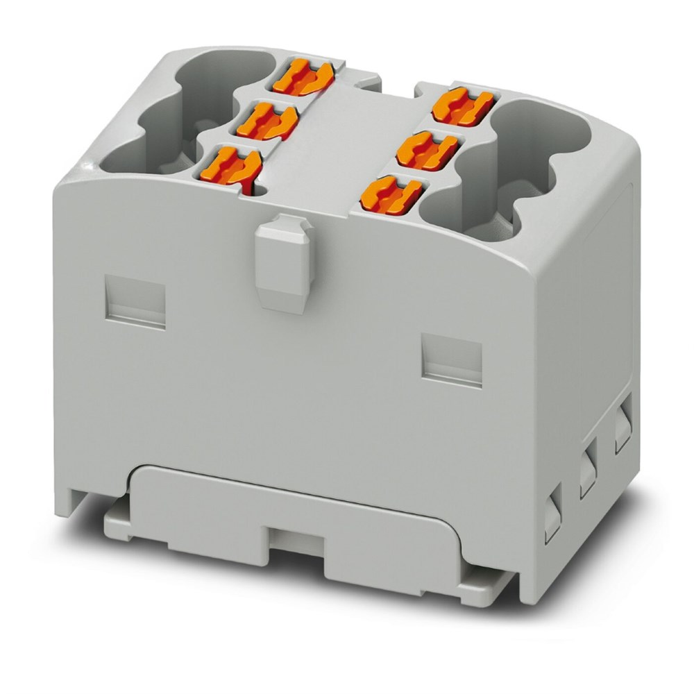 Распределительный блок, c внутренней перемычкой, номинальное напряжение: 450 В, номинальный ток: 17,5 A, тип подключения: зажимы Push-in, сечение: 0,2 мм² - 2,5 мм², тип монтажа: крепление защелками на адаптере для монтажной рейки, Прямой монтаж при помощи фланца, подвесной, цвет: cерый