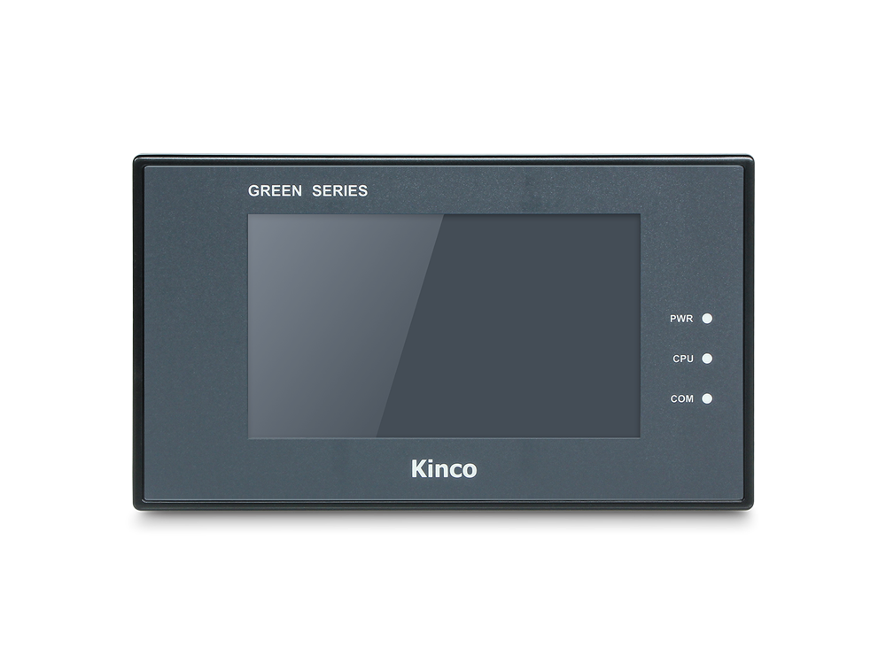 Панель оператора сенсорная, серии Green, дисплей TFT, размер 4,3", разрешение 480x272 точек, 16,77 млн. цв., яркость 300 кд/м2, встроенные интерфейсы 2xRS232, 1xRS485, 1xRS422, 1xUSB slave, 1xUSB host,1xRJ45, напряжение питания 24 В DC, потребляемая мощность 3,5 Вт, габаритные размеры ВхШхГ 89х154х60 мм, монтажный вырез 146х81 мм, вес 0,4 кг, степень защиты IP65, среда разработки Kinco Dtools, максимальное кол-во экранов в проекте HMI 999.