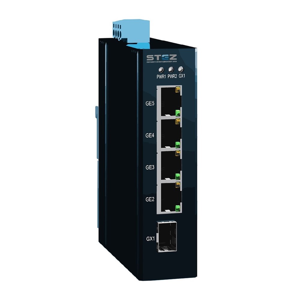 Неуправляемый коммутатор, монтаж на DIN рейку, 1 порт 100/1000Base-X SFP, 4 порта 10/100/1000Base-TX RJ45, 12-48VDC/18-30VAC резервированное питание, рабочий диапазон температур от -40 до 75⁰C