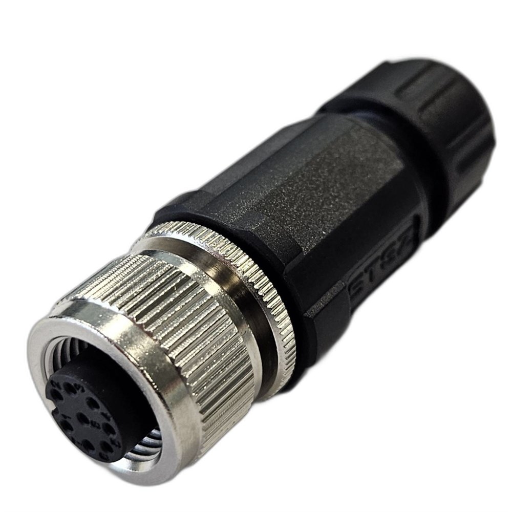 Разъем М12, кодировка 8A, гнездовой, заделка кабеля пайкой, пластиковый корпус, прямой, резьба PG7, кабельная часть