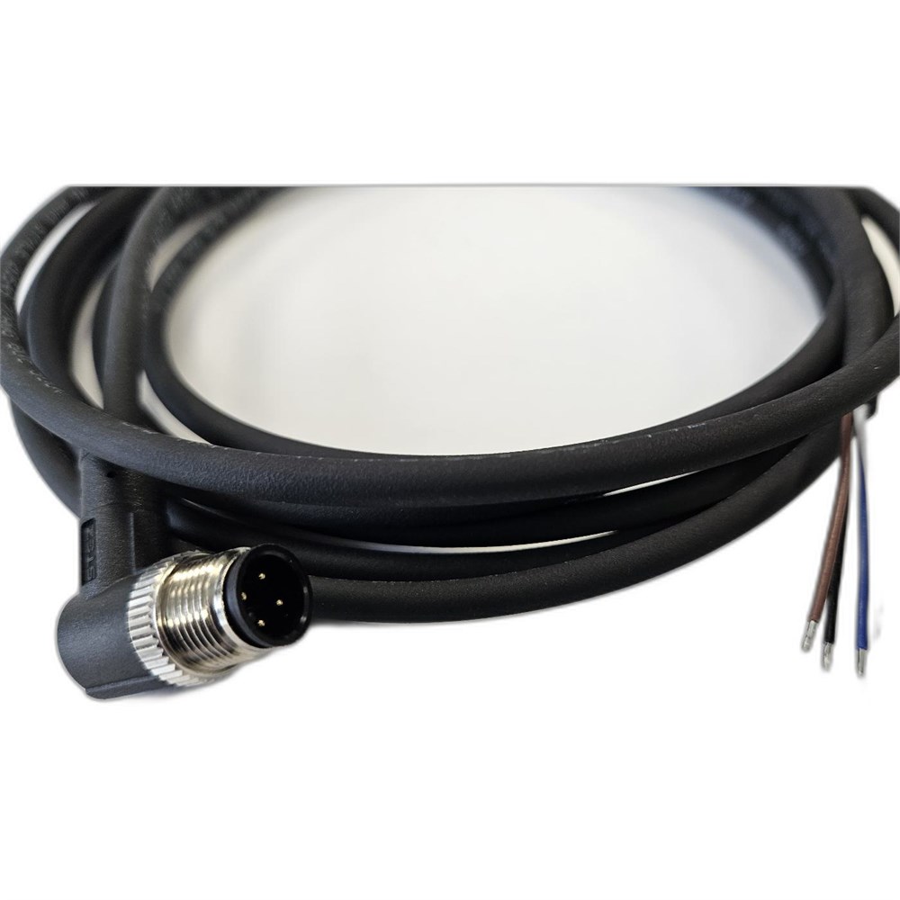 Кабель M12 для подключения датчиков и актуаторов, кодировка 4A, штыревой, длина кабеля 3000 мм, угловой, полиуретан, черный, свободный конец