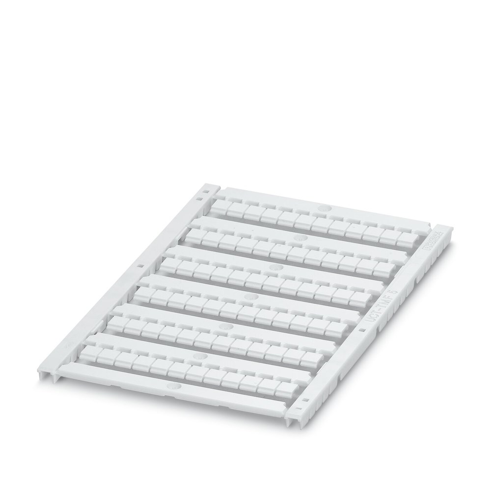 Заказная маркировка для клеммных модулей, в пластинах, цвет: белый, надписи в соответствии с требованиями заказчика, тип монтажа: крепление в плоских пазах для табличек, для клемм шириной: 5,2 мм, размер маркировочного поля: 4,4 х 4,7 мм, Количество отдельных табличек: 72