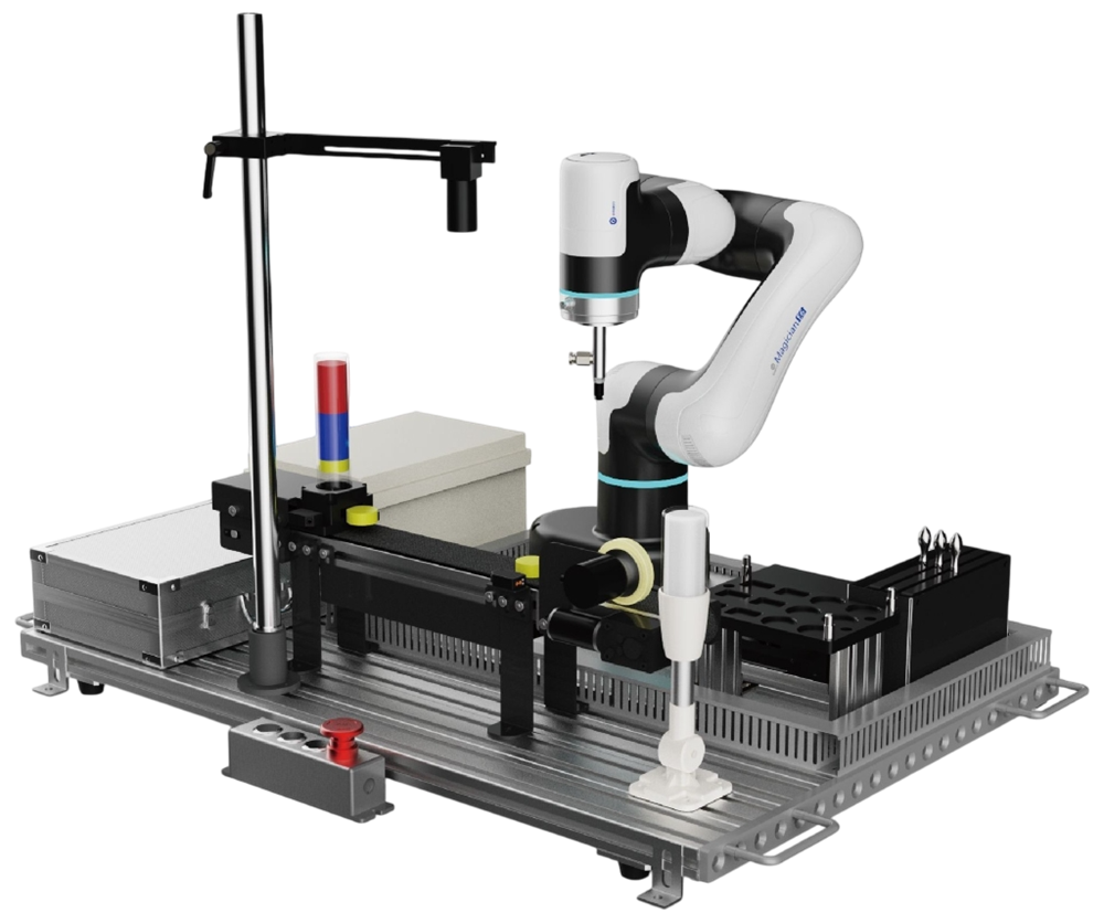 Универсальная коллаборативная роботизированная платформа обучения - платформа обучения студентов профессиональных училищ и сотрудников предприятий, которая включает в себя роботов, систему управления, систему технического зрения, ленточный транспортер и другие компоненты. Платформа предусматривает модульную конструкцию, ее можно легко комбинировать для моделирования автоматической работы: обнаружения, захвата, перемещения, загрузки на поддоны и сборки объектов. В учебных проектах она может использоваться для калибровки роботизированных систем, отслеживания траектории и управления связью. С помощью платформы учащиеся приобретают навыки работы с интеллектуальными роботизированными системами, а также улучшают и получают практические навыки.